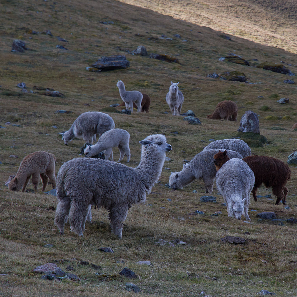 Alpakat laiduntavat osittain villeinä Andien vuoristossa 3500 - 5000 metrin korkeudella, kymmenien tuhansien perheiden kasvattamina ja elannon tuojina heille. Lankojen tuottajamme investoi ja yhdessä näiden pienten kasvattajien kanssa tekee työtä edistääkseen alpakoiden asianmukaisia jalostus- ja tuotantotapoja.