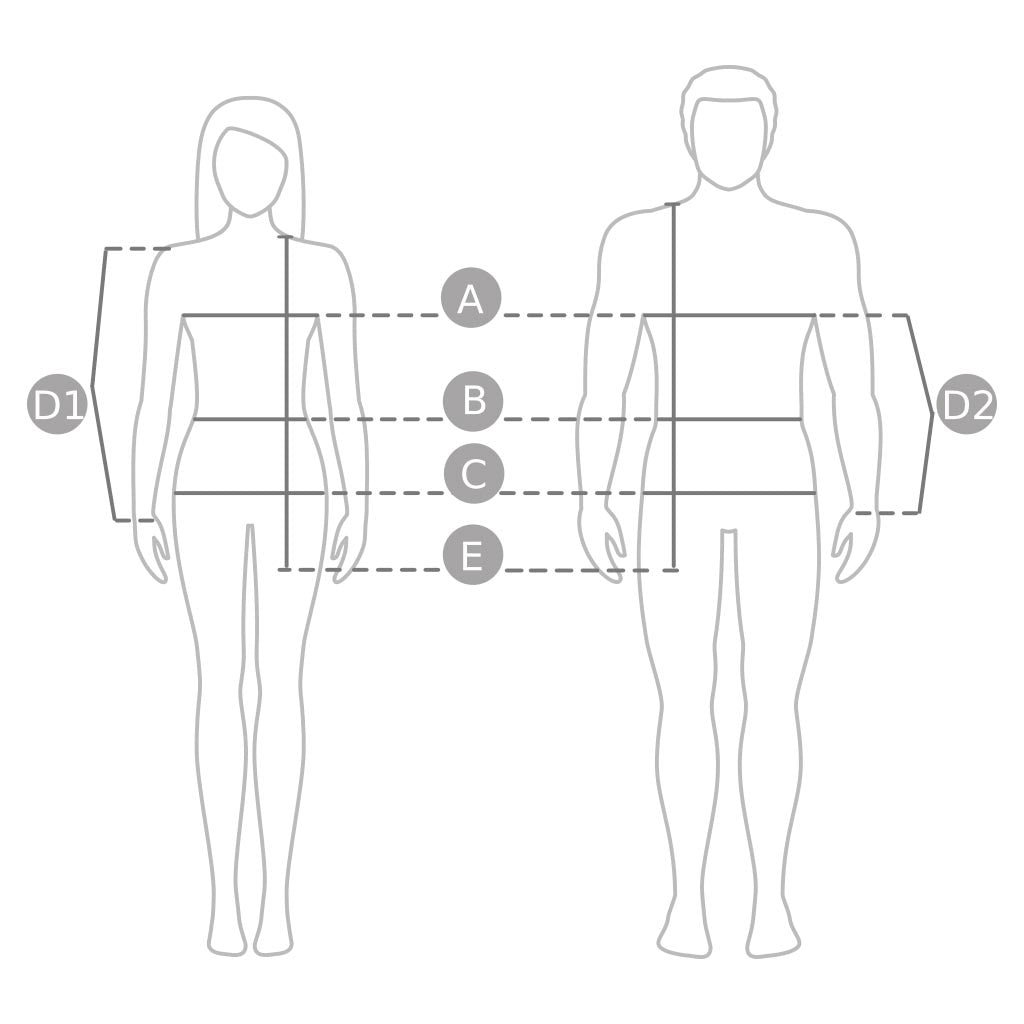 D - hihan ulko- / sisäpituus Mittaa olkasaumasta / kainalosaumasta hihan alareunaan. Mittaustapa vaihtelee tuotekohtaisesti.